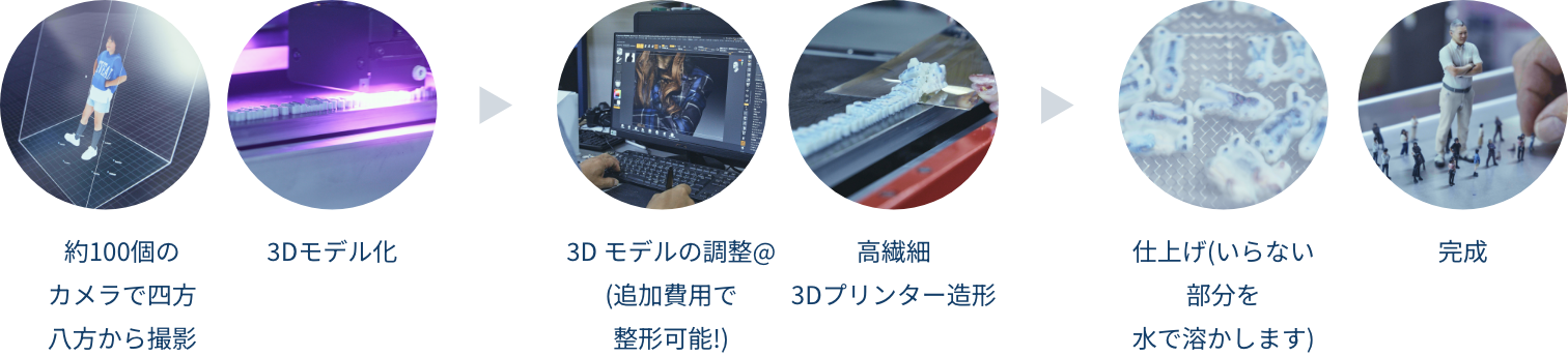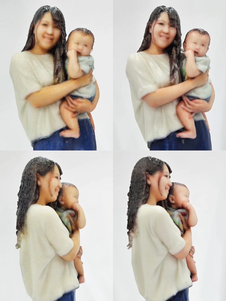 最新の高精細3Dプリンター技術により、表情や細部まで忠実に再現します。写真では伝わらない立体感をリアルに表現します。